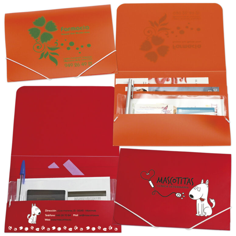 REF 3088.5 Carpetilla de polipropileno con pieza separadora de vinilo de 2 porta tarjetas y 2 separadores de polipropileno. Cierre con goma. Tamaño cerrada 18,2 x 25,3 cm