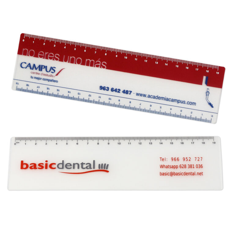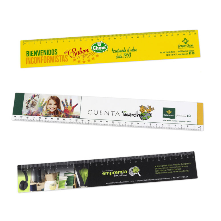 En NURIMAR fabricamos reglas personalizadas en polipropileno de alta calidad, disponibles en diferentes longitudes y grosores. Ofrecemos impresión en serigrafía o digital a todo color, adaptando el diseño a las necesidades de cada cliente. Ideales como material promocional o escolar, nuestras reglas combinan resistencia, funcionalidad y una imagen profesional que refuerza su marca.