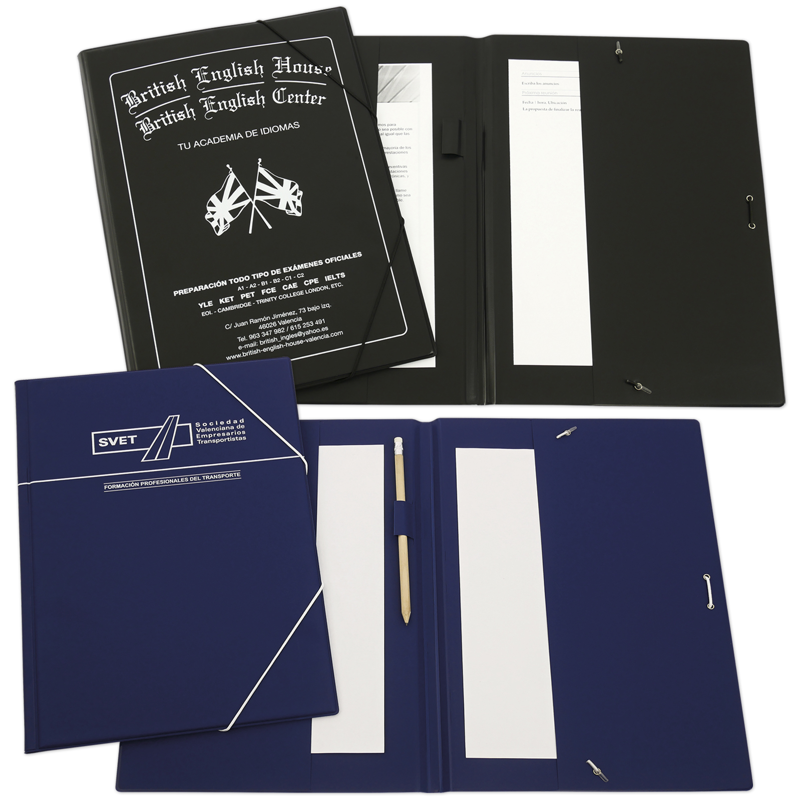 REF. 911 Carpeta de vinilo con 2 bolsillos verticales, lazo para bolígrafo (no incluido) y cierre con goma.