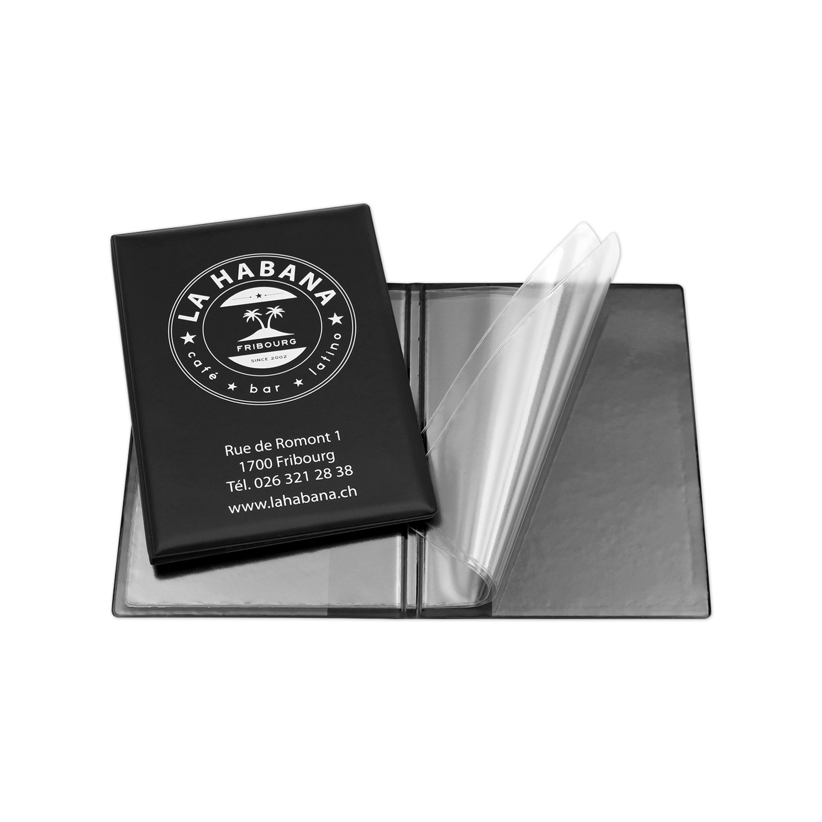 REF. 932.2 Carta de vinilo con tapas acolchadas, 4 bolsas flotantes y 1 bolsillo en el interior de cada tapa.