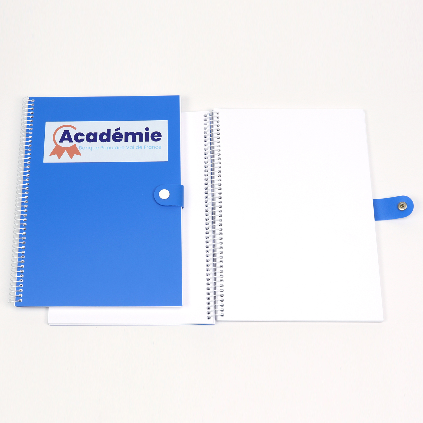 REF. 3165 Libreta A4 con 100 hojas blancas y tapas de polipropileno, cierre lengüeta con broche.