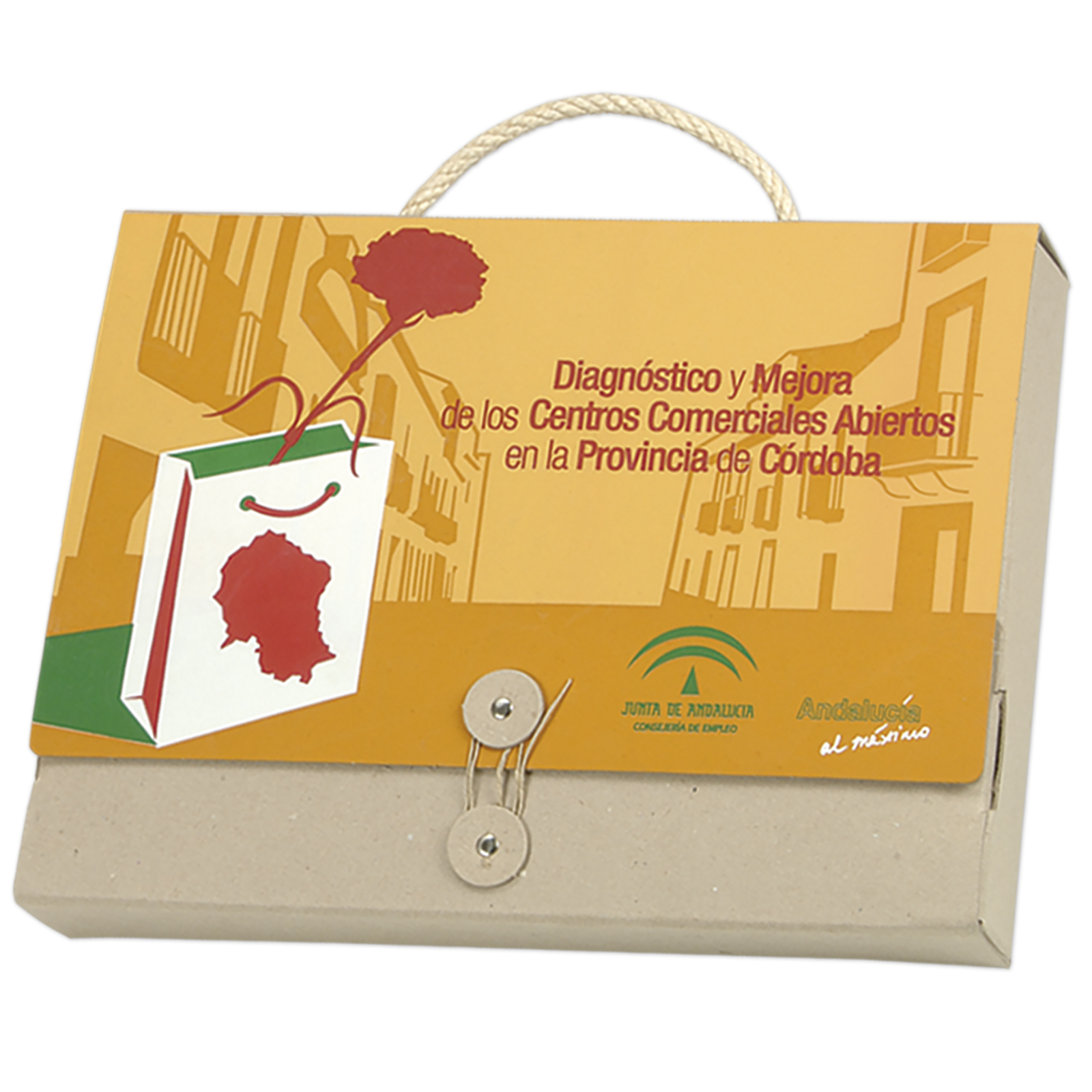 REF. 962 Maletín de cartón reciclado con asa de cuerda y cierre de discos con hilo