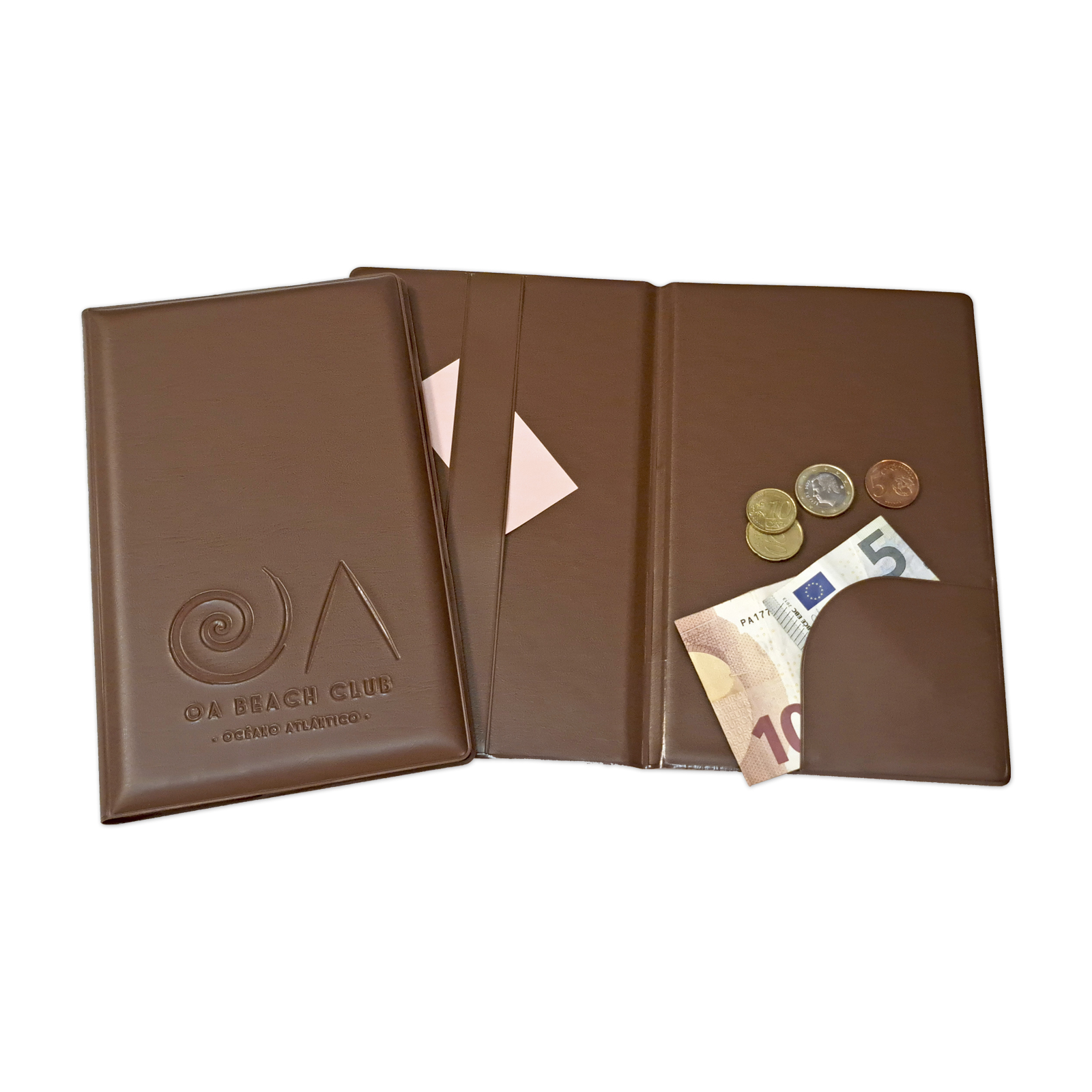 REF. 1041 Carpetilla portacuentas de vinilo con tapas acolchadas, 1 bolsillito y fajilla para ticket.