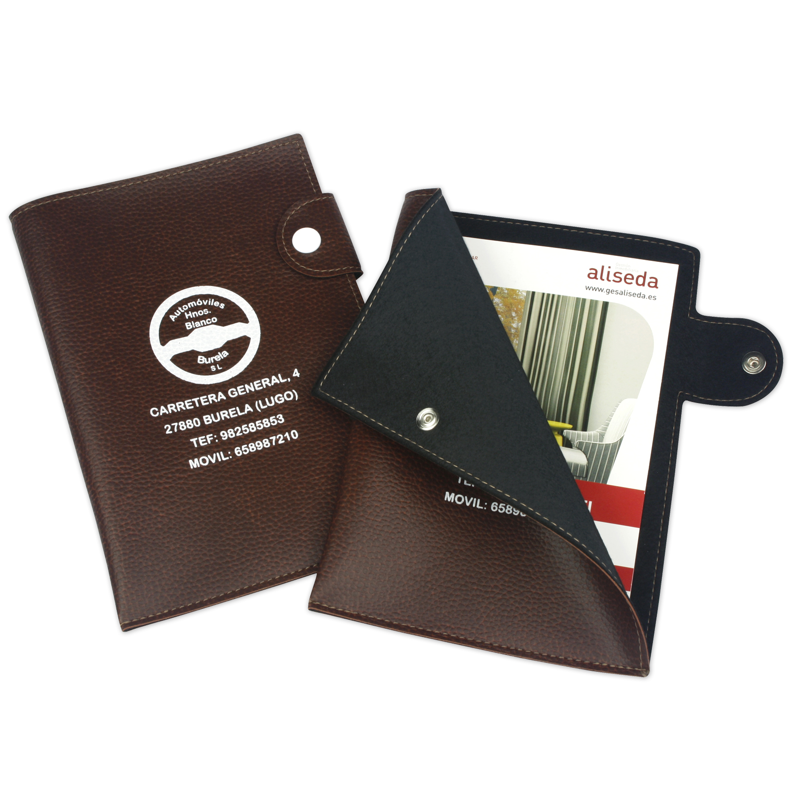 REF 402 Portadocumentos con 1 bolsillo abierto en L y cierre lengüeta con broche. Tamaño cerrada 17 x 24 cm
